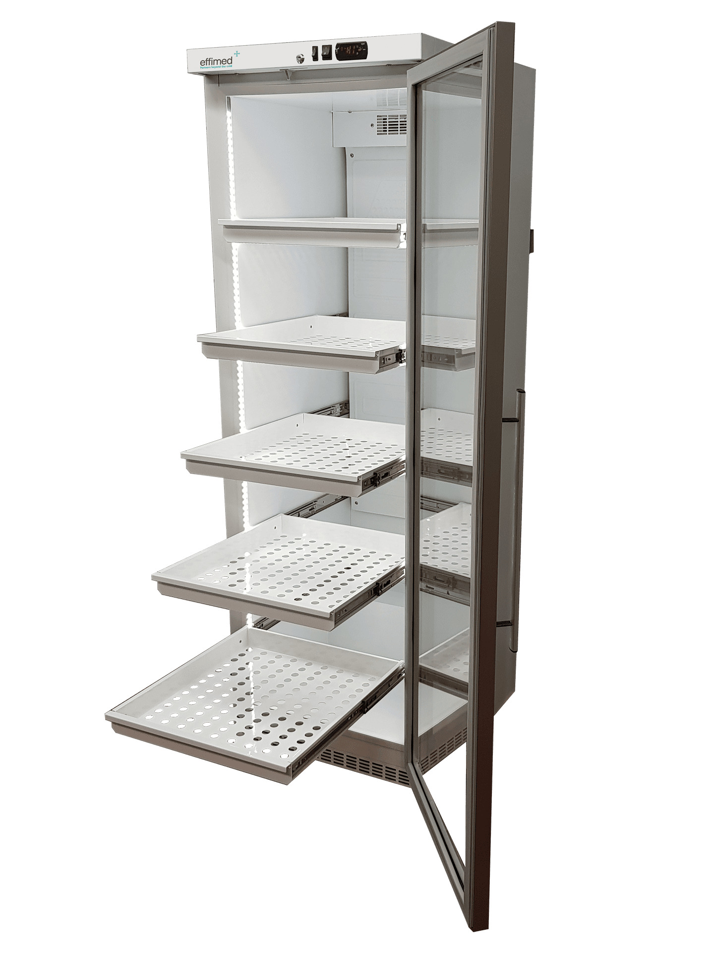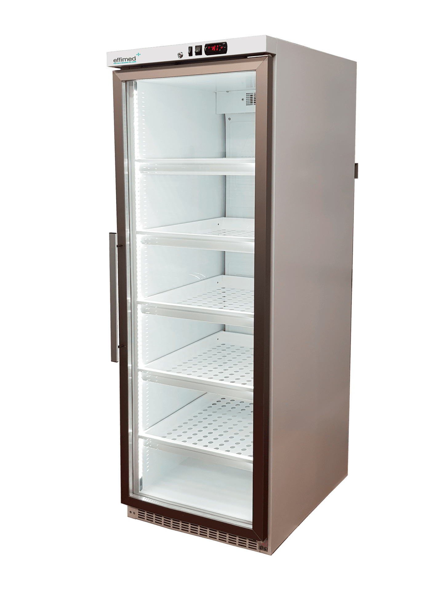 La seguridad es una prioridad en este modelo. El armario está equipado con una alarma sonora y visual que se activa en caso de que la temperatura se salga del rango establecido, así como una alarma para advertir si la puerta queda abierta. La puerta, de doble cristal templado, permite una amplia visibilidad de los medicamentos y cuenta con un sistema de apertura reversible para adaptarse a cualquier espacio.