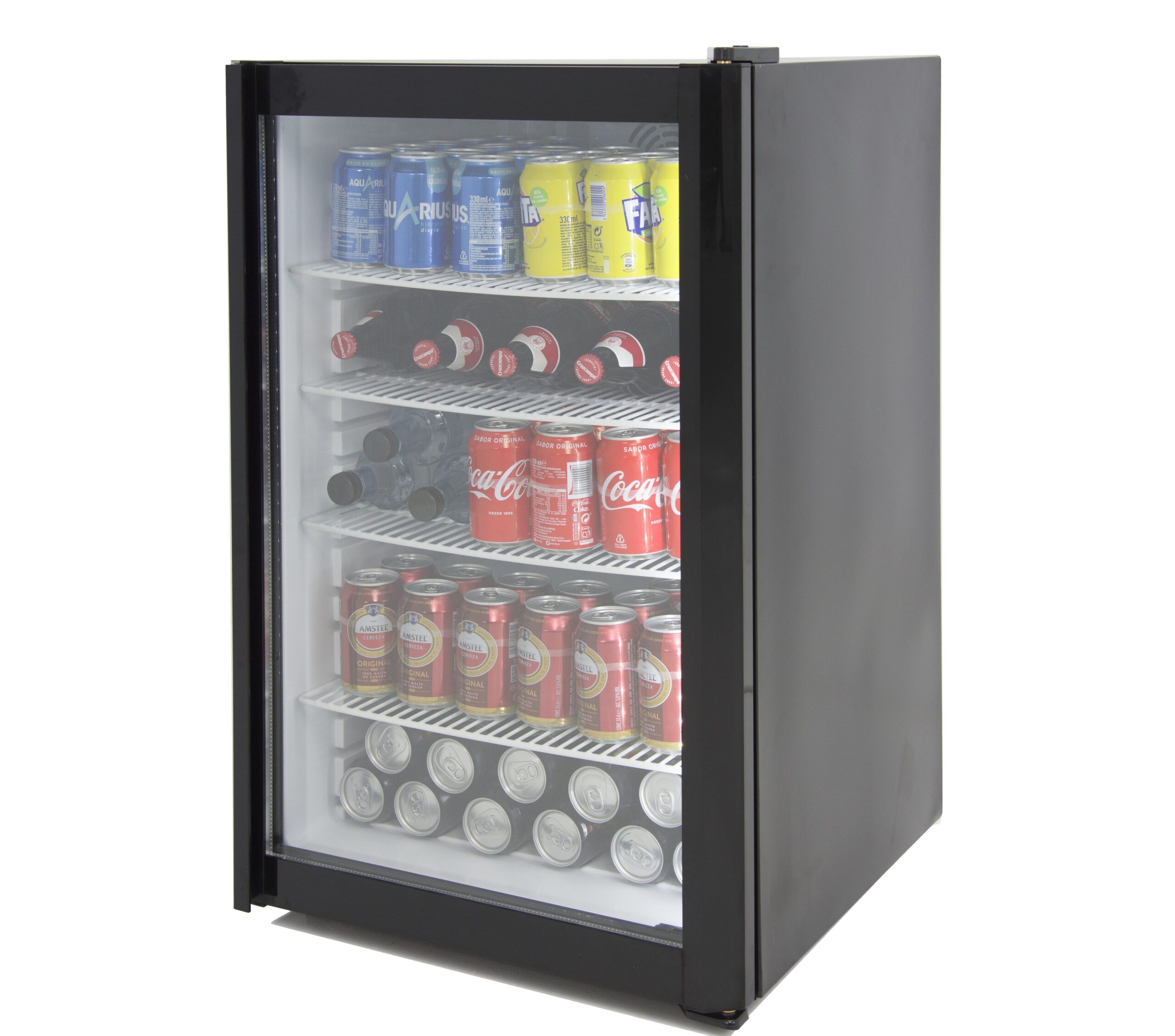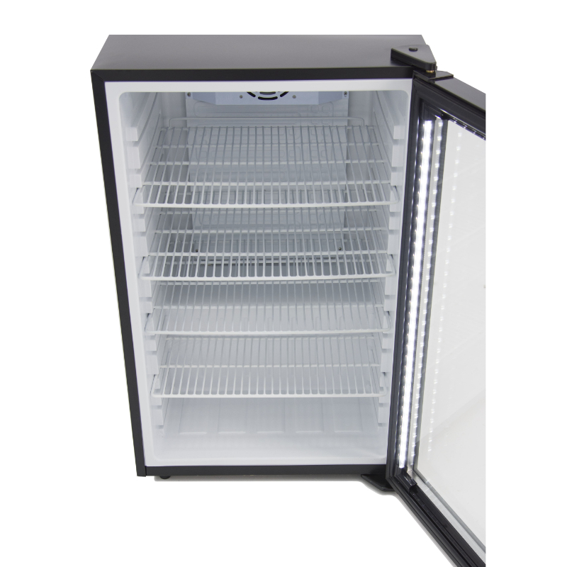 Con una capacidad de 120 litros y 4 estantes regulables, el espacio interior puede adaptarse fácilmente para exponer diferentes tipos de productos, con capacidad para 200 latas de 33 cl. El sistema de refrigeración estático asistido por ventilador asegura una temperatura constante y uniforme en un rango de +2 °C a +8 °C, ideal para la conservación de una amplia variedad de productos.