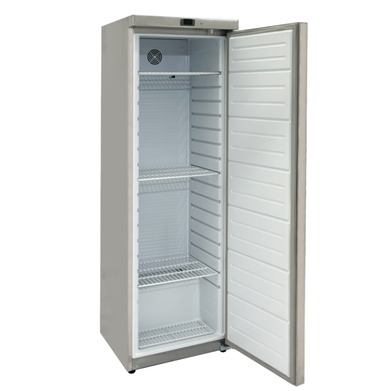 Diseñado para maximizar la capacidad de almacenamiento vertical, el Armario Refrigerado PEKIN AR400SS es la elección perfecta para negocios de hostelería que necesitan una solución de refrigeración robusta y espaciosa. Su construcción de alta calidad con un exterior en acero inoxidable no solo le confiere una gran resistencia a la corrosión y los golpes, sino que también facilita enormemente la limpieza y el mantenimiento. El interior de ABS alimentario con uniones curvas garantiza la higiene.