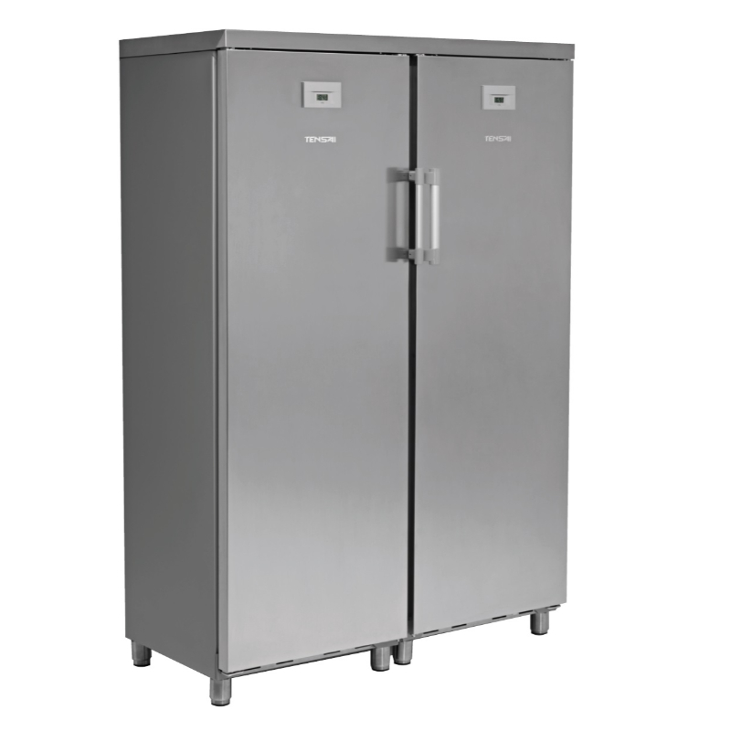Con una capacidad bruta total de 588 litros, este armario de doble puerta ofrece una sección de refrigeración de 333 litros (con 6 estantes extraíbles) y una de congelación de 255 litros (con estantes fijos), permitiendo almacenar una gran variedad de productos de forma organizada. El sistema de refrigeración es ventilado en la sección de refrigeración para una distribución uniforme del frío y estático en la de congelación para mantener la temperatura en un rango de -14 °C a -28 °C.