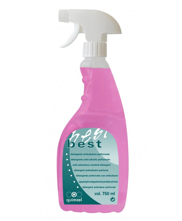 BEST es un detergente anticalcáreo perfumado especialmente formulado para el mantenimiento diario de baños, griferías, suelos y revestimientos en general.