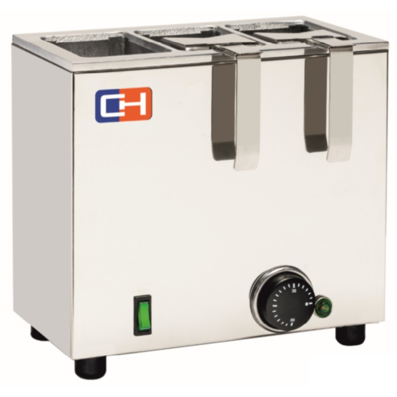 El Calentador de Leche en Tetrabrik CBRIK3 es un equipo de diseño compacto y robusto, ideal para optimizar el espacio en cualquier mostrador. Su construcción en acero inoxidable garantiza durabilidad y una limpieza sencilla, cumpliendo con los estándares de higiene profesional. Las resistencias eléctricas blindadas aseguran un calentamiento rápido y homogéneo del baño María. Un termostato ajustable permite controlar la temperatura de la leche con precisión, desde los 30 hasta los 90°C. La capacidad para tres tetrabriks de 1 litro lo hace perfecto para locales con una demanda moderada. Además, cuenta con un grifo frontal para un dispensado de agua cómodo y seguro.