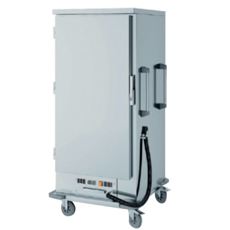 El Carro Caliente Bajo CC-10GN está construido íntegramente en acero inoxidable con una estructura reforzada, lo que garantiza durabilidad y una fácil limpieza. Su cuerpo totalmente hermético y el aislamiento en espuma de poliuretano de alta densidad aseguran la máxima eficiencia energética y la conservación óptima del calor. El sistema de calentamiento cuenta con un bloque calórico extraíble, resistencias ventiladas y una bandeja de humedad con sistema antiolas, que proporciona un calentamiento homogéneo y preciso (entre 0 y 90 °C). El panel de control digital con interruptor de marcha luminoso y termostato regulable facilita la monitorización de la temperatura. Además, el carro está equipado con ruedas grandes e insonorizadas con freno, cierres con llave y una puerta con apertura de 180°, facilitando su transporte y manejo en espacios reducidos. Las guías y cremalleras son fácilmente extraíbles para una limpieza más profunda.