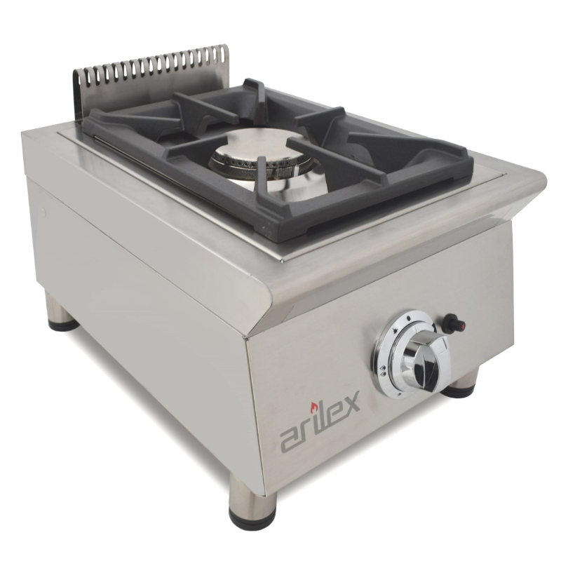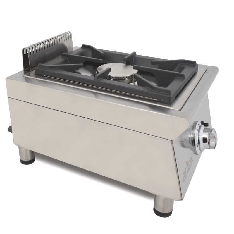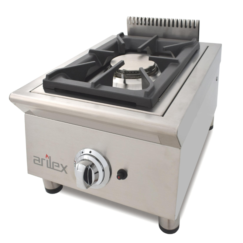 La Cocina a Gas 1 Fuego de Arilex, modelo 40FCGN, es una solución compacta y robusta para cocinas profesionales. Fabricada en España con acero inoxidable de 1.2 mm de espesor y acabado satinado, garantiza durabilidad y un manejo sencillo. A pesar de su tamaño compacto, el quemador de 5.8 kW ofrece un gran poder calorífico con un 60% de eficiencia certificada, lo que la hace ideal para obtener resultados profesionales en negocios con poco espacio.