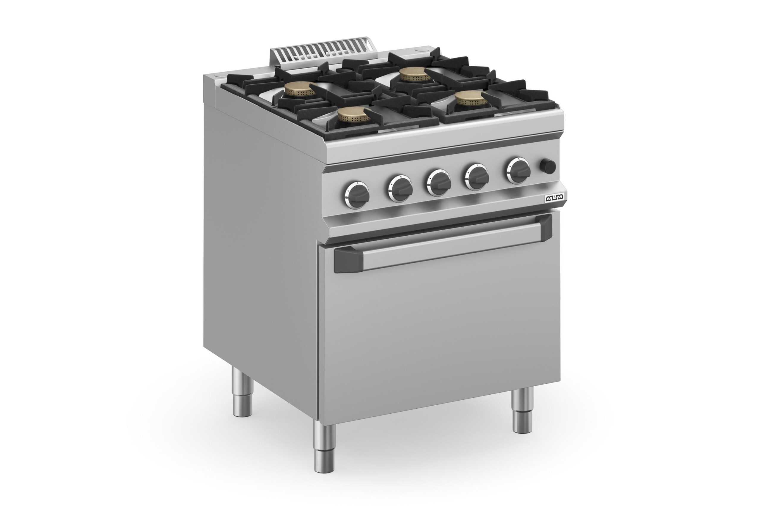 La Cocina a Gas con Horno MFB77FGXS Magistra Plus 700 de MBM es una solución integral para cocinas profesionales que necesitan optimizar el espacio y la funcionalidad. Este modelo de fabricación italiana combina una robusta encimera con cuatro potentes quemadores Flex Burner y un horno de gran capacidad, ideal para una amplia gama de preparaciones. La encimera de acero inoxidable AISI 18/10, con un espesor de 1 mm, garantiza una durabilidad excepcional y facilita la limpieza diaria.