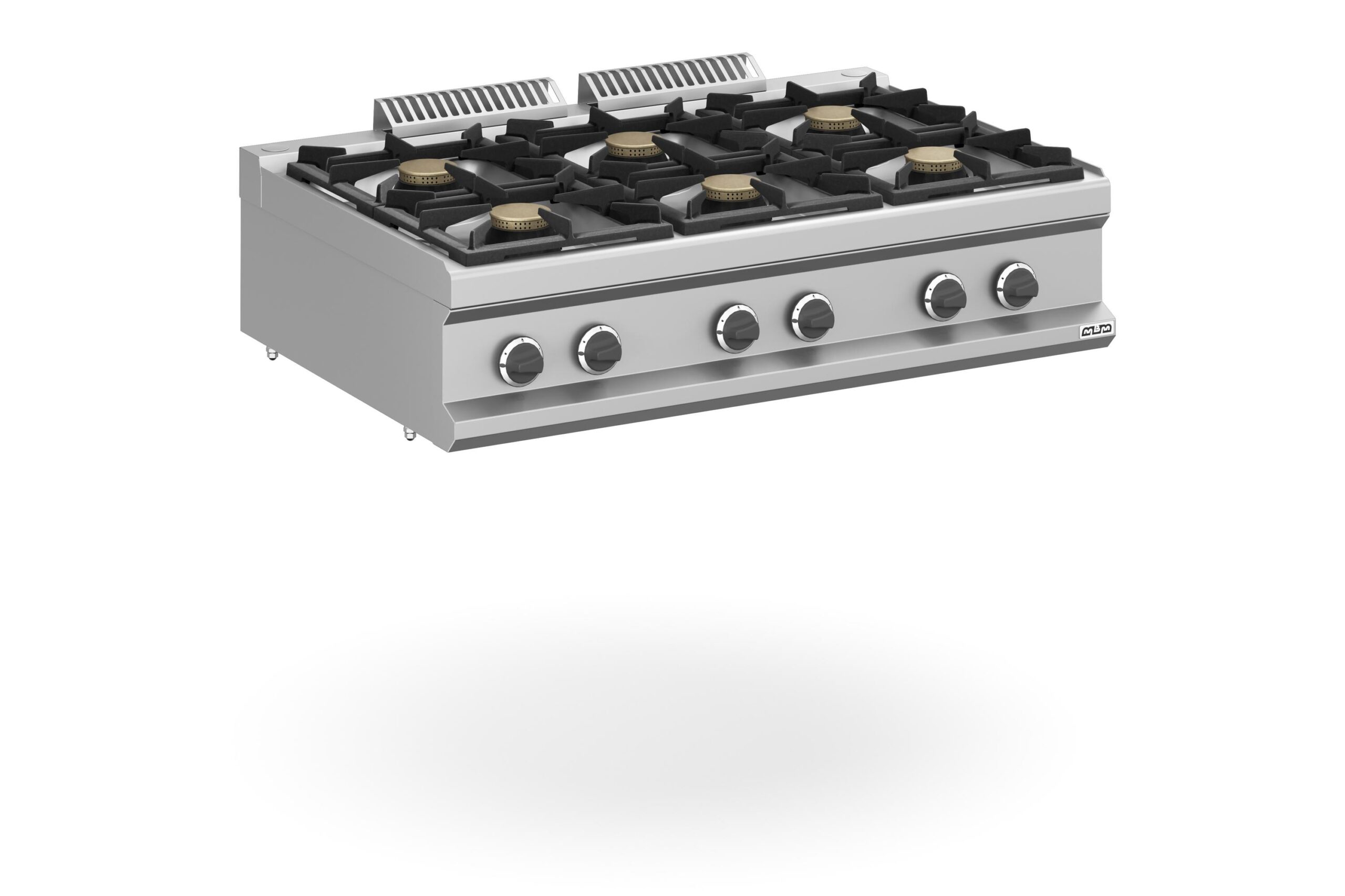 La Cocina a Gas 6 Fuegos Sobremesa MFB711TXL Magistra Plus 700 de MBM es una estación de cocción de élite, diseñada para las cocinas profesionales de gran volumen. Fabricada en Italia con una encimera de acero inoxidable AISI 18/10 de 1 mm de espesor, esta cocina de sobremesa garantiza la máxima durabilidad, resistencia a la corrosión y una limpieza sencilla para mantener los más altos estándares de higiene.