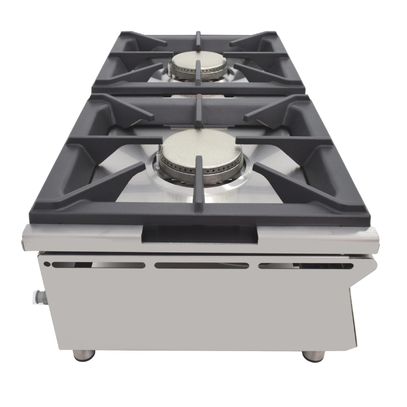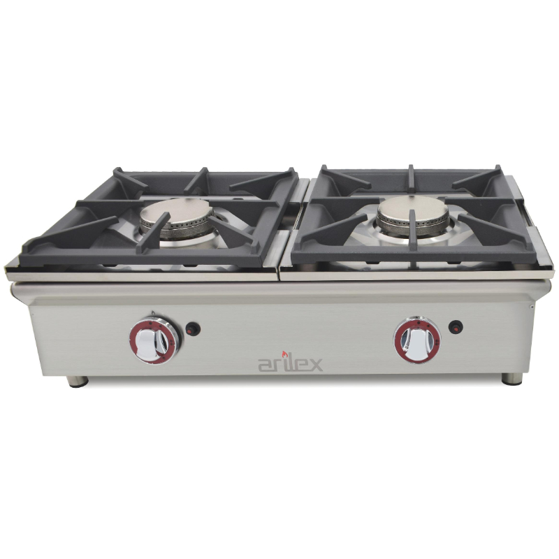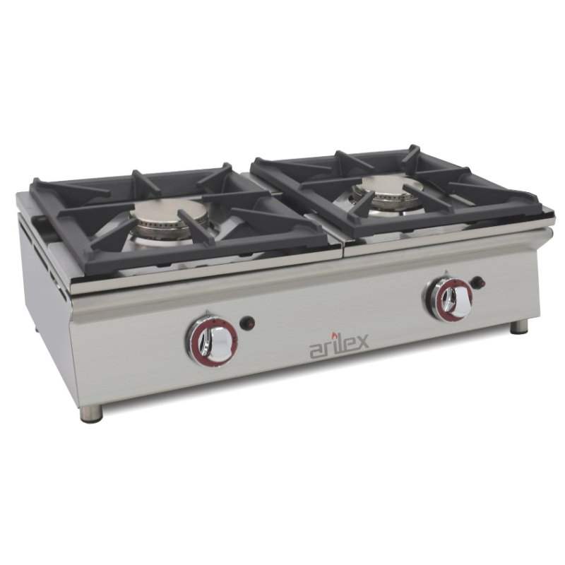 La Cocina a Gas Sobremostrador de Arilex, modelo 80CGN, es un equipo profesional de alto rendimiento y durabilidad, ideal para optimizar el espacio en cualquier cocina industrial. Fabricada en España con una estructura de acero inoxidable de 1 mm de espesor, este equipo destaca por su robustez y su diseño funcional. Cuenta con dos potentes quemadores de 5.8 kW cada uno, con una alta eficiencia certificada del 60%, lo que garantiza una cocción rápida y eficaz. Las parrillas de hierro fundido son totalmente desmontables para facilitar la limpieza y, al igual que otros modelos de la marca, pueden ser reemplazadas por placas de acero laminado opcionales para convertir el equipo en una plancha.
