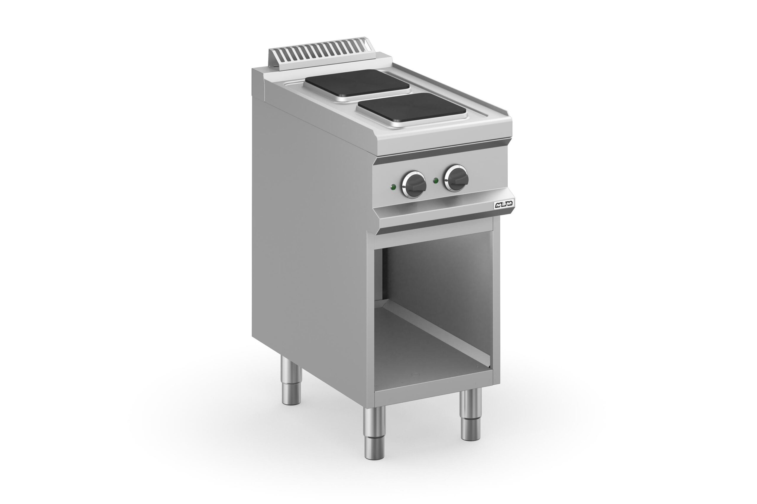 La Cocina Eléctrica 2 Zonas Cuadradas con Mueble MPQ74A Magistra Plus 700 de MBM es un equipo esencial para cualquier cocina profesional que busque una alternativa de cocción potente y eficiente. Fabricada en Italia con una encimera de acero inoxidable AISI 18/10 de 1 mm de espesor, esta cocina con mueble incorporado garantiza durabilidad, resistencia y una fácil limpieza, cumpliendo con los estándares más exigentes de higiene.