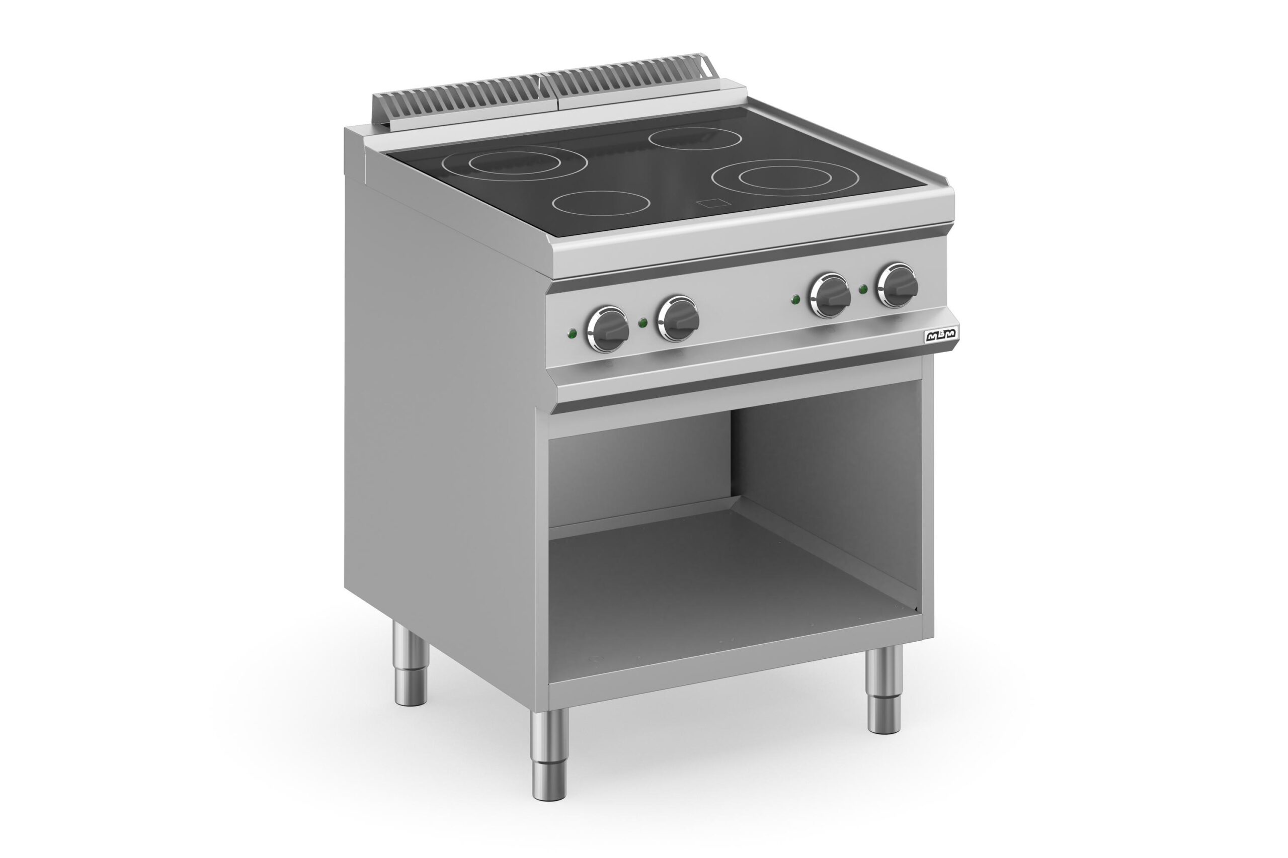 La Cocina Vitrocerámica Eléctrica 4 Zonas con Mueble MVC77A Magistra Plus 700 de MBM es una solución robusta y eficiente para la cocina profesional. Fabricada en Italia, su diseño combina la durabilidad de una estructura de acero inoxidable con la funcionalidad de una superficie de cocción de última generación.