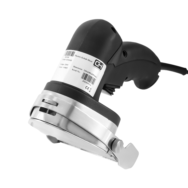 El Cuchillo Kebab Eléctrico Estambul KS100-E es una herramienta profesional de alta precisión diseñada para cortar carne de kebab. Con su cuchilla de 100 mm de diámetro y un espesor de corte regulable de 0 a 8 mm, permite obtener lonchas uniformes y limpias de forma rápida y sencilla. Su diseño compacto y ergonómico lo hace seguro y fácil de manejar.