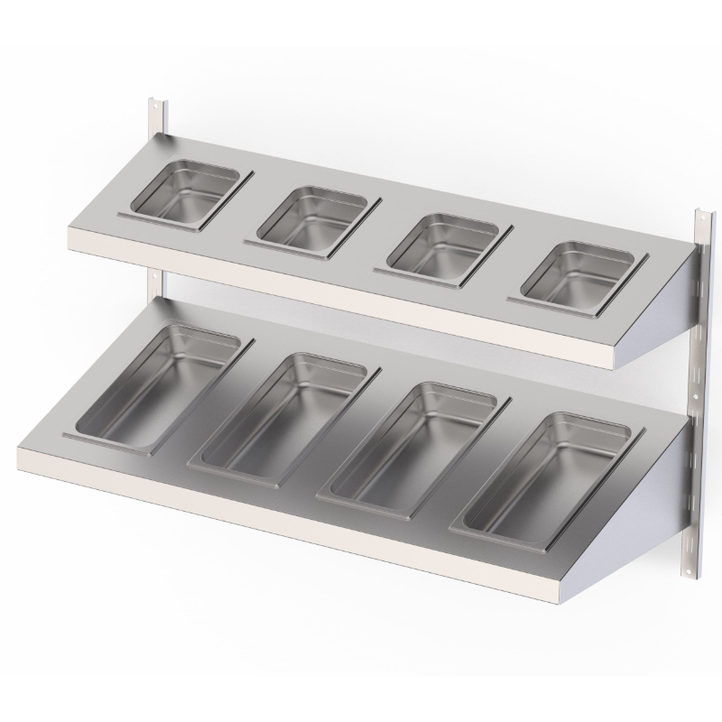 Estantería Mural Acero Inoxidable Con Estante Inclinado Cubeta GN Para Cremallera Mural Fondo 250 1000×250 mm AWSSS100250