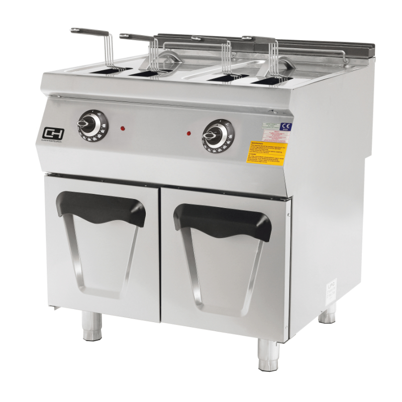 La Freidora Eléctrica Línea 700 Estambul EMPPLS7FE020D es una herramienta robusta y fiable de doble cuba. Su estructura está construida íntegramente en acero inoxidable, lo que garantiza durabilidad y una limpieza sencilla. El calentamiento se realiza mediante resistencias eléctricas blindadas en acero inoxidable. Cuenta con un sistema de cabezal eléctrico elevable para facilitar las operaciones de limpieza y saneamiento. El control termostático permite una regulación precisa de la temperatura entre 90 y 185 °C de forma independiente para cada cuba, e incluye un termostato de seguridad. Las cubas, fabricadas de una sola pieza y con esquinas redondeadas, facilitan enormemente la limpieza. Además, están equipadas con grifos de vaciado y vienen con 2 cestos de acero inoxidable por cuba para optimizar la preparación de los alimentos.