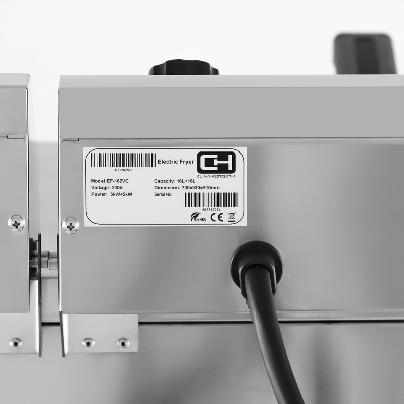 La Freidora Eléctrica Pekín EF-162VC es una solución robusta y de alto rendimiento para negocios de hostelería. Fabricada en acero inoxidable de alta calidad, es resistente a la corrosión y fácil de limpiar. Sus dos cubas independientes, cada una con una capacidad de 12 litros y una potencia de 5.0 kW, permiten freír diferentes tipos de alimentos al mismo tiempo sin mezclar sabores. Cada cuba cuenta con un termostato de alta sensibilidad que regula la temperatura hasta 190°C y un termostato de seguridad que corta el suministro eléctrico a 210°C para garantizar una operación segura. Las resistencias blindadas de alto rendimiento permiten alcanzar rápidamente la temperatura óptima de trabajo. Sus cubas fijas incorporan un grifo integrado para un vaciado de aceite sencillo y rápido. El mueble integrado con patas de acero inoxidable regulables en altura proporciona una mayor estabilidad y una solución completa para cualquier cocina profesional.