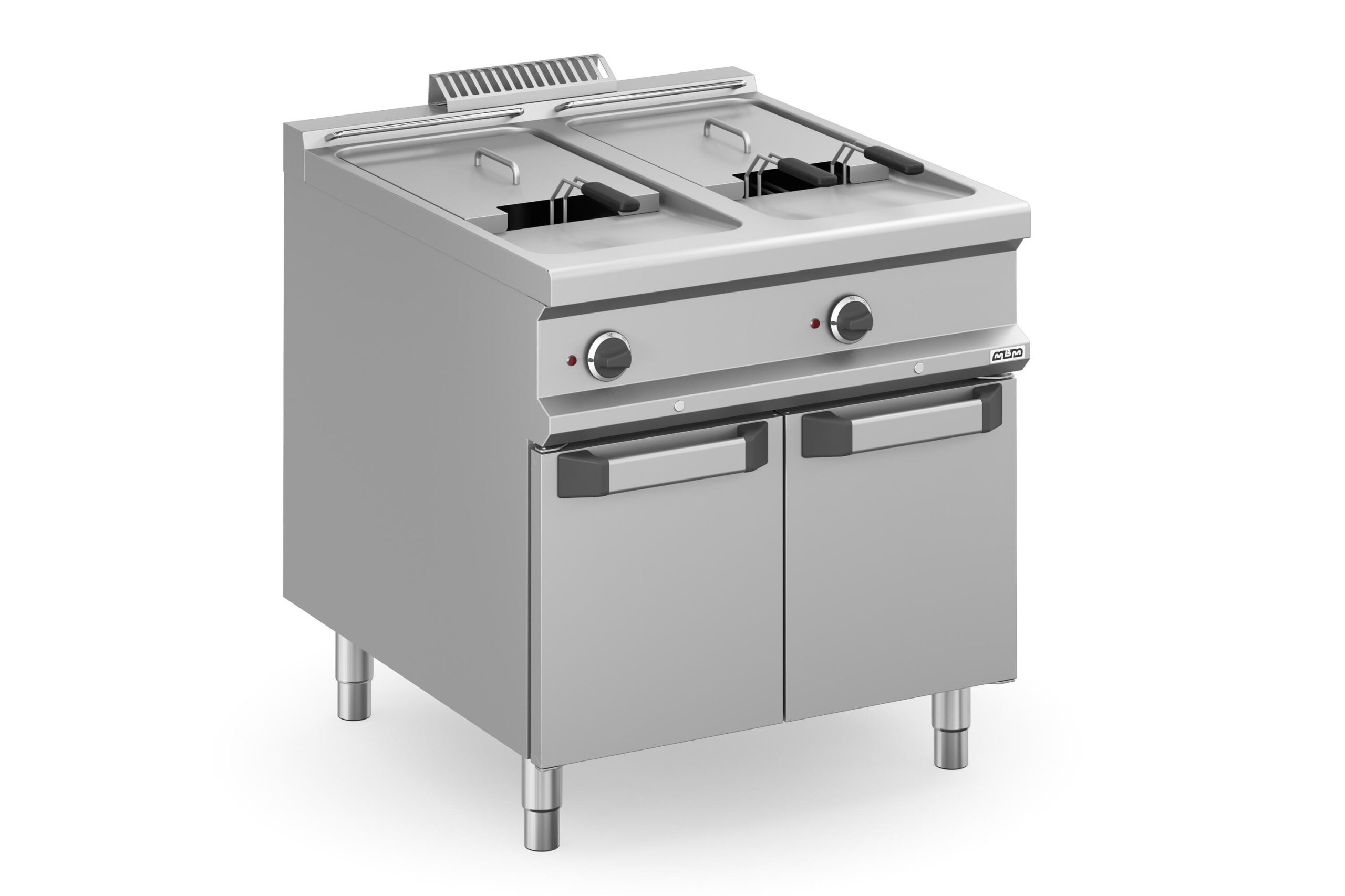 La Freidora Eléctrica de 2 Cubas de 18 + 18 Litros MFRE98A Magistra Plus 900 de MBM es un equipo robusto y fiable, diseñado para satisfacer las demandas de las cocinas industriales. Sus dos cubas están fabricadas en acero inoxidable AISI 304 18/10, con esquinas redondeadas y soldadas de forma continua a la encimera, lo que facilita enormemente la limpieza e higiene.