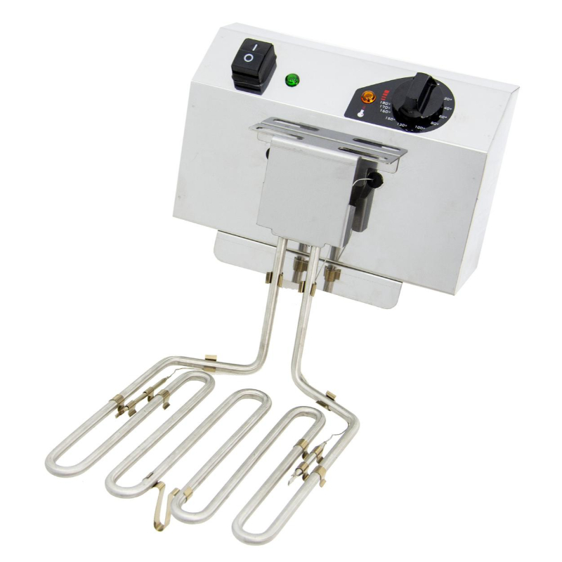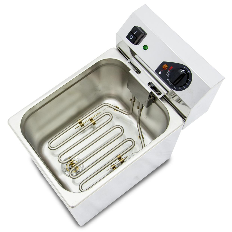 Para una cocción óptima y segura, cuenta con un termostato de trabajo regulable hasta 190°C y un termostato de seguridad con rearme manual regulado a 240°C. La freidora está equipada con un contactor, lo que garantiza un funcionamiento más seguro y prolonga la vida útil del termostato. Su sistema de «zona fría» debajo de la resistencia evita que los residuos de alimentos se quemen y contaminen el aceite, asegurando frituras más limpias y sabrosas. Esta freidora no incluye grifo de vaciado, siendo ideal para un uso medio-intensivo.