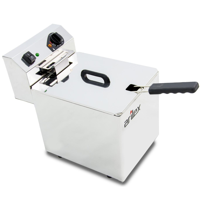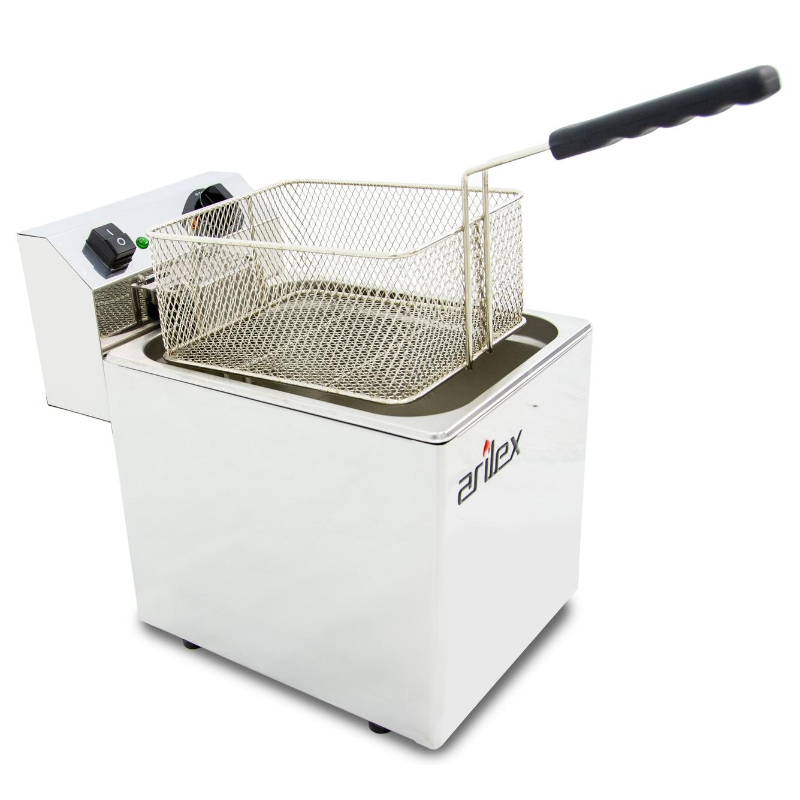 La Freidora Eléctrica Evolution Arilex EVO10 es una freidora industrial de sobremesa, fabricada en España con acero inoxidable de alta calidad con acabado de alto brillo. Su cuba interior, embutida y sin ángulos, facilita su limpieza y mantenimiento. El cabezal eléctrico es totalmente estanco y extraíble, e incluye un microinterruptor de seguridad que apaga la resistencia al ser retirado, previniendo accidentes.