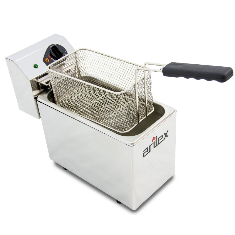 La Freidora Eléctrica Evolution Arilex EVO5 es un equipo de sobremesa con una capacidad de 5 litros, ideal para freír alimentos de forma eficiente en entornos profesionales. Su diseño compacto y su fabricación en acero inoxidable garantizan durabilidad y facilidad de limpieza, siendo una solución práctica para cualquier negocio de hostelería.