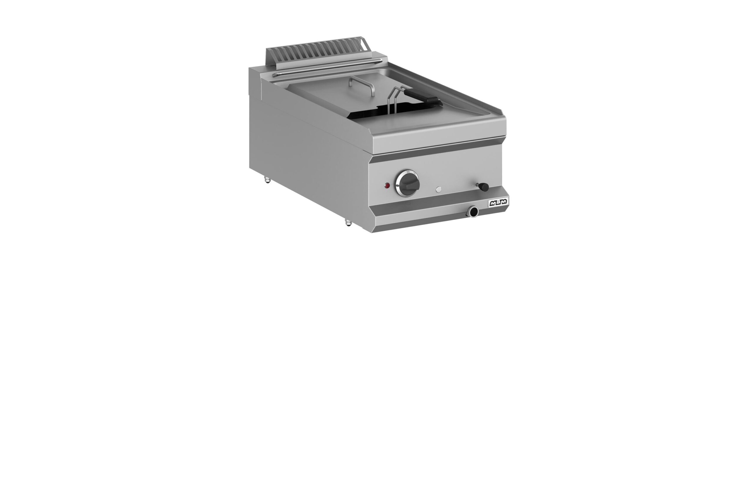 La Freidora Eléctrica Sobremesa 1 Cuba 12 Litros 9 kW MFRE74T Magistra Plus 700 de MBM es un equipo robusto y fiable, diseñado para satisfacer las demandas de las cocinas profesionales con limitaciones de espacio. Su construcción de alta calidad en acero inoxidable, con una cuba de acero AISI 304 y esquinas redondeadas, facilita la limpieza y desinfección.