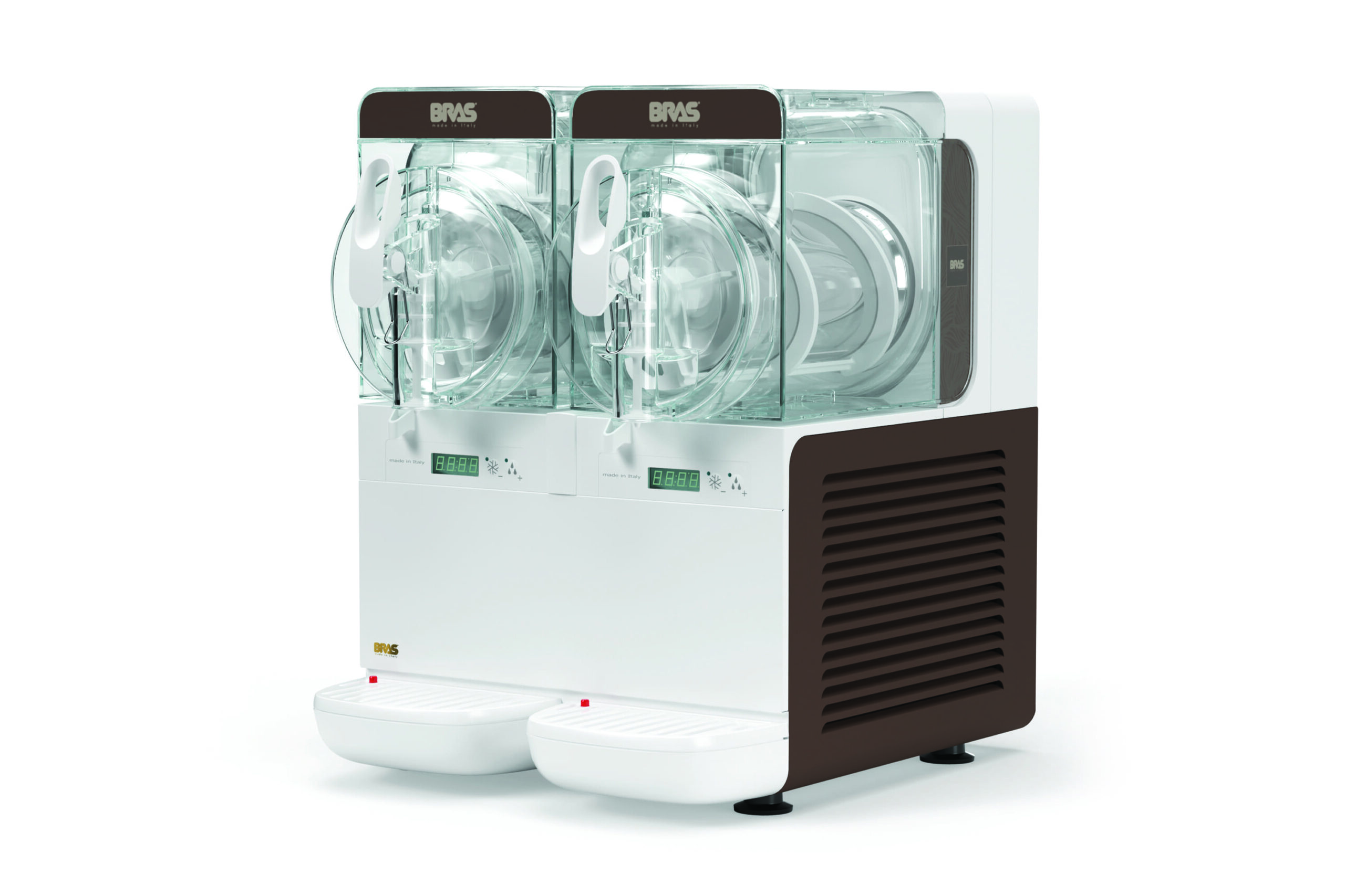 La Granizadora BRAS B-CUBE2 es un equipo profesional innovador, perfecto para negocios de hostelería que desean maximizar la variedad de su oferta de bebidas frías sin ocupar mucho espacio. Su diseño de doble cuba permite preparar y servir dos sabores diferentes de granizados, sorbetes o cremas frías de manera simultánea.