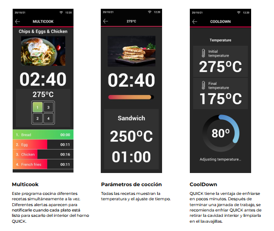Este horno combina aire ciclónico 3D Impingement y convección, una tecnología que distribuye el calor de forma uniforme sobre los alimentos, consiguiendo resultados crujientes por fuera y jugosos por dentro en tiempos de cocción muy reducidos.