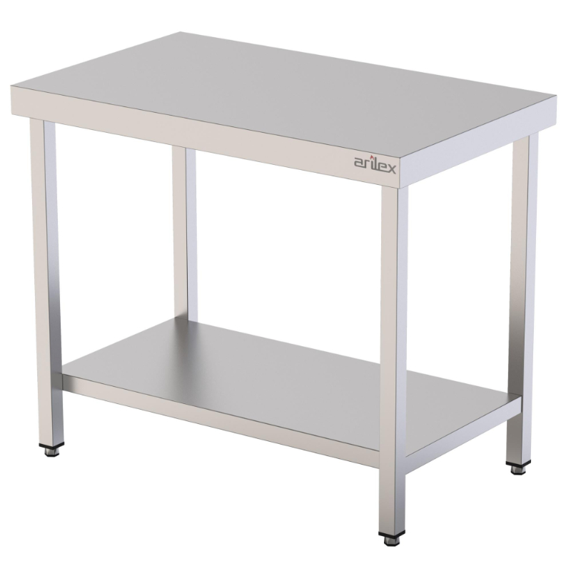 La Mesa Central de acero inoxidable AISI 304 de Arilex es una robusta superficie de trabajo con estante inferior, diseñada para ser colocada en el centro de cocinas profesionales. Su fabricación en acero inoxidable de alta calidad asegura una durabilidad excepcional y facilita el mantenimiento de un entorno higiénico.