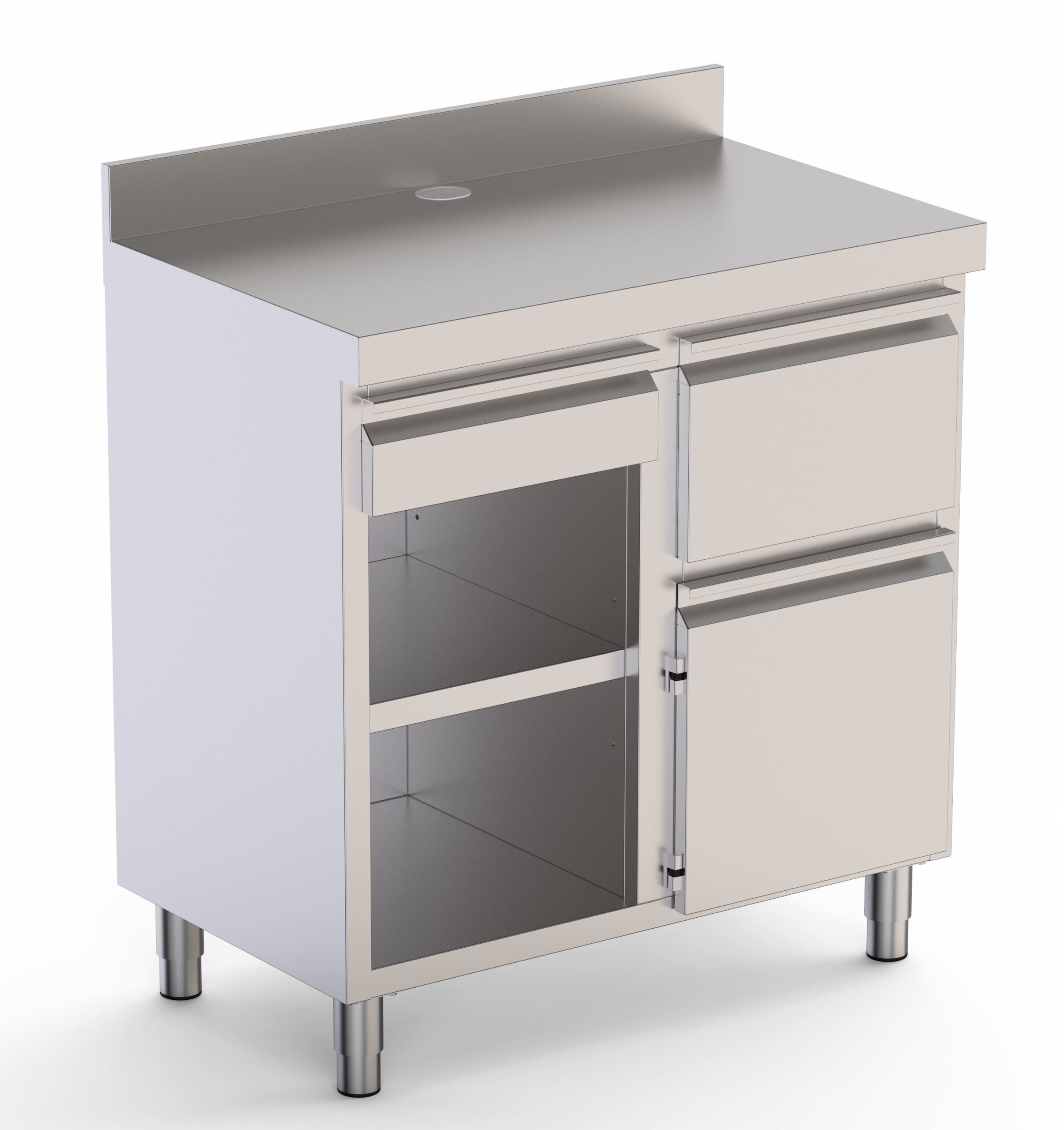 Mueble Cafetero Acero Inoxidable Con Tolva a la Derecha, 1 Estante, 1 Puerta y 1 Cajón 1000x600x1050h mm CST60100D2SRB
