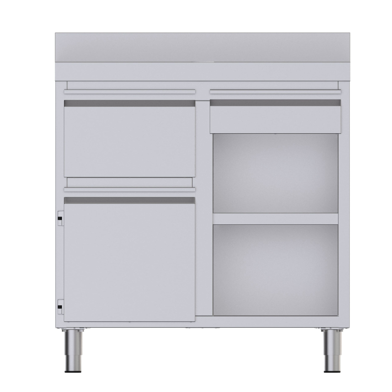 Mueble Cafetero Acero Inoxidable Con Tolva a la Izquierda, 1 Estante, 1 Puerta y 1 Cajón 1000x600x1050h mm CST60100D2SLB