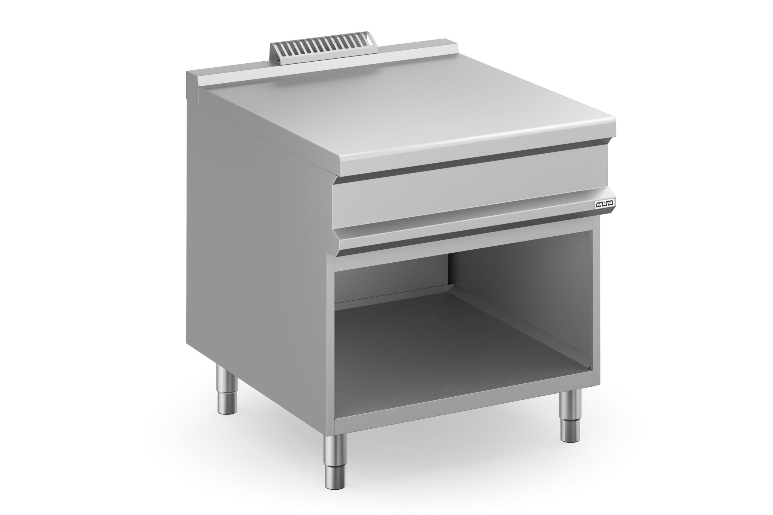 Este mueble ofrece una superficie de trabajo adicional y un espacio de almacenamiento inferior. Los pies sólidos y ajustables fabricados en acero inoxidable AISI 304 permiten una nivelación precisa en cualquier tipo de suelo, y su frontal moldeado asegura una integración estética y funcional con el resto de los equipos de la línea Magistra Plus 900.