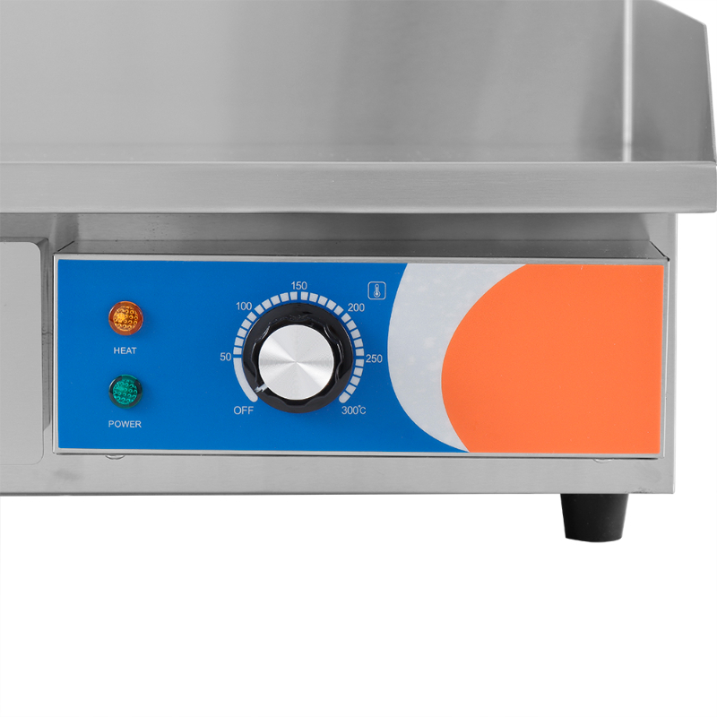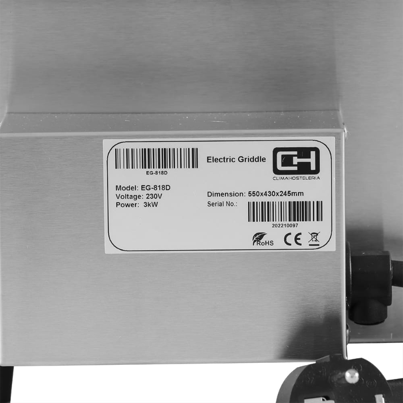 La Plancha Eléctrica de Cromo Duro Pekín EG-818D es un equipo de cocción robusto y de alta calidad, diseñado para el uso profesional. Su carcasa de acero inoxidable no solo le otorga durabilidad, sino que también facilita su limpieza y mantenimiento. La pieza central es su superficie de parrilla con un baño de cromo duro de 10 mm, que asegura una excelente distribución y retención del calor, además de ser muy fácil de limpiar y mantener. El control de termostato totalmente automático permite regular la temperatura de forma precisa entre 50 y 300°C. Para una higiene óptima, dispone de un cajón recogegrasas extraíble que facilita su limpieza. También cuenta con un protector contra salpicaduras para mantener el entorno de trabajo limpio y seguro, y pies de goma que garantizan una posición estable sobre cualquier superficie.