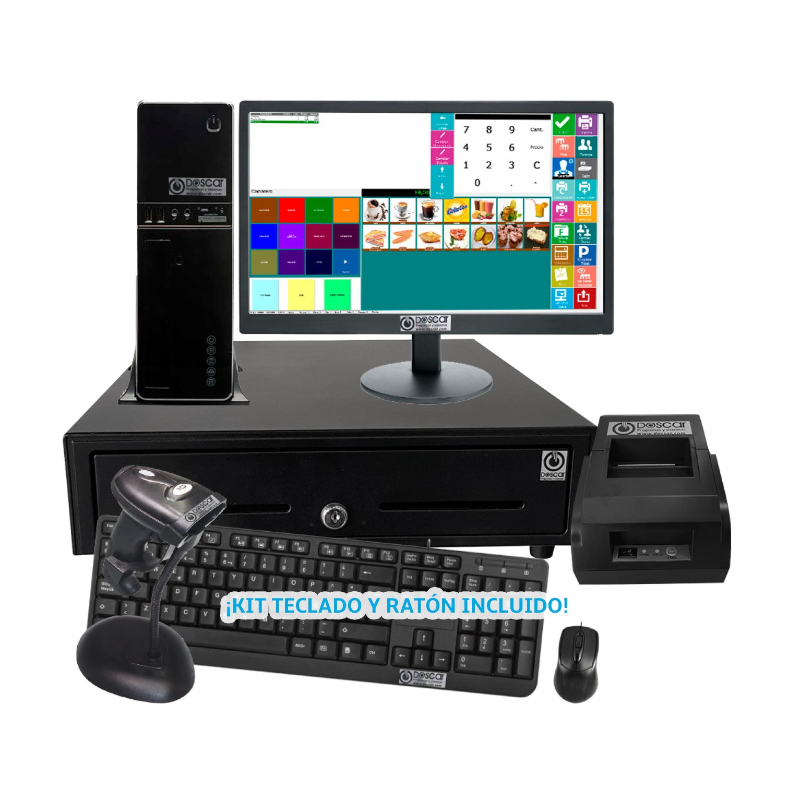 La impresora térmica de tickets de 80mm incluida es perfecta para imprimir recibos, comandas y comprobantes de forma eficiente. El sistema también viene con un robusto cajón portamonedas y un software de gestión en su versión completa, lo que permite a los usuarios gestionar ventas, control de mesas, inventario, y otras operaciones diarias de manera más efectiva. En resumen, este TPV es una excelente opción para aquellos que buscan una solución confiable, completa y rentable para su negocio sin la necesidad de una pantalla táctil.