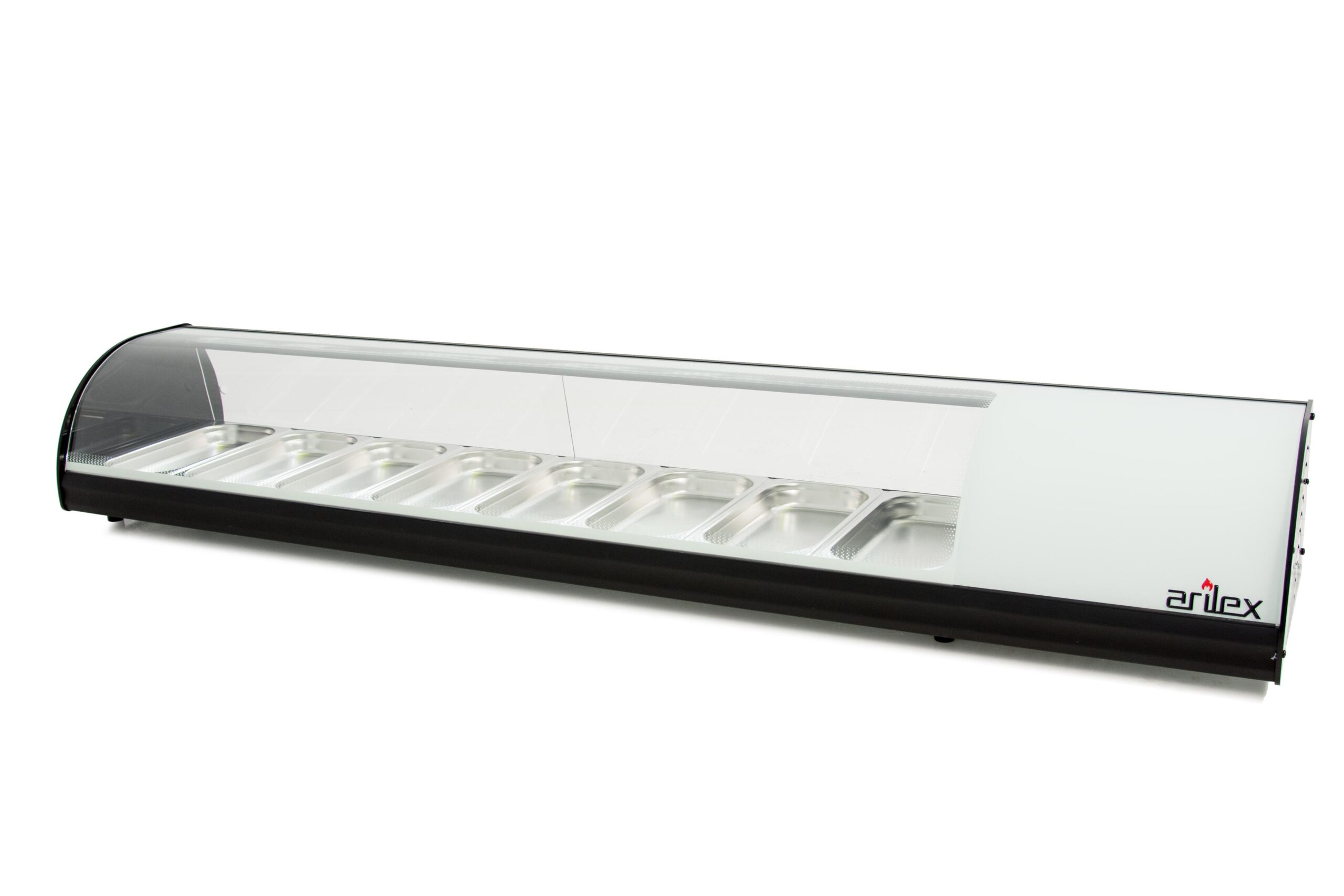La Vitrina Refrigerada de Tapas Arilex, modelo 8VTL-BL, es un equipo fabricado en España que combina la calidad profesional con un diseño funcional y elegante. Diseñada para su uso en barras de hostelería, esta vitrina se distingue por su superficie de exposición de placa lisa, que permite una libertad total a la hora de presentar platos, bandejas y otros recipientes, sin las restricciones de las cubetas tradicionales.